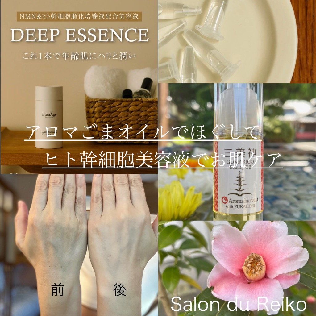 @aroma_harvest を使用しもみほぐしたあと、ヒト幹細胞美容液オールインワンでタップリ保湿♡