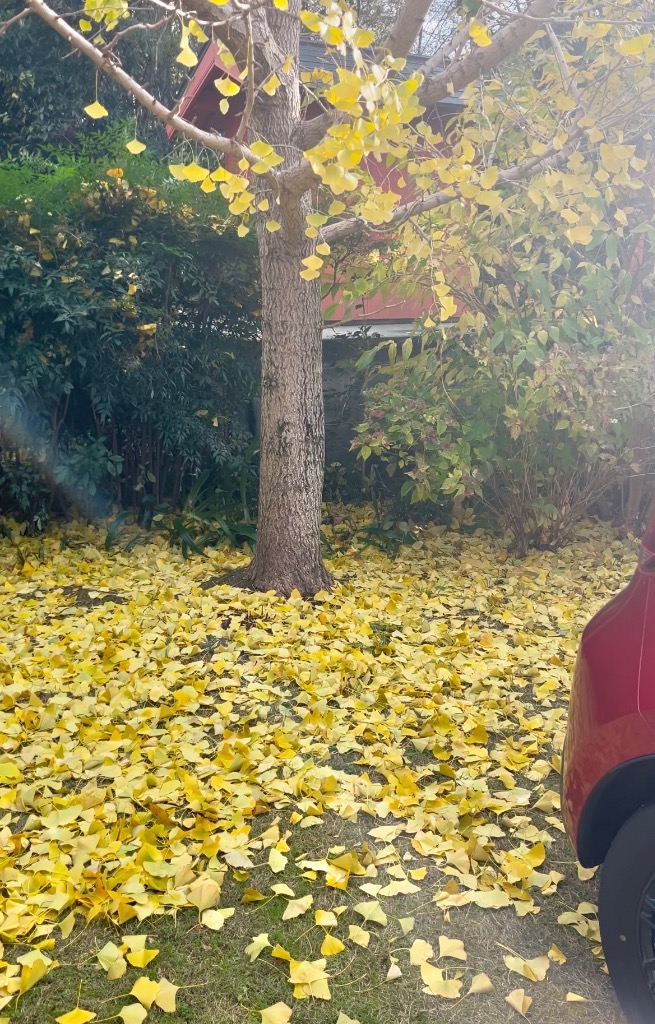 今、お店の前のイチョウの木の葉っぱがたくさん落ちて、綺麗なイチョウの絨毯になっています♡