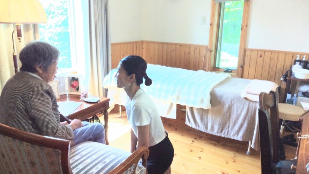 シニアエステはお着替えなしでフェイシャルのみケアさせていただき、肩揉み、お茶しながらおしゃべりをするコースです🥰