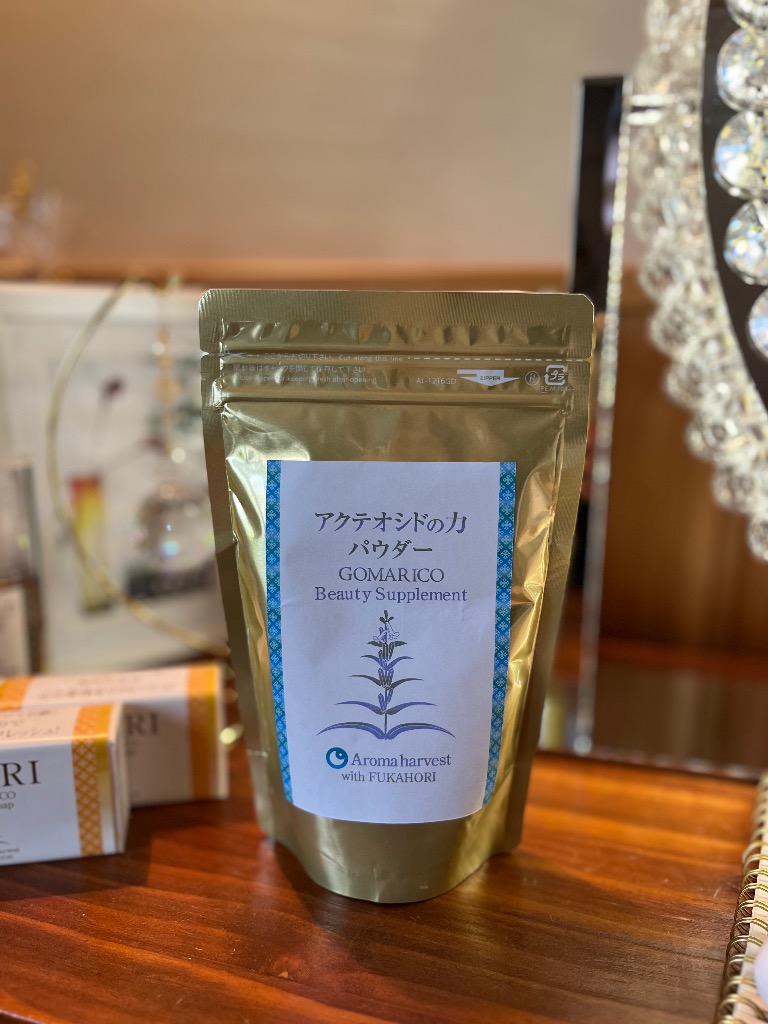 新商品アクテオシドの力パウダーは当店のGOMARICOフェイシャルエステにも使用しております、黒ごま若葉パウダーから作られたお商品です。もちろん無添加✨。