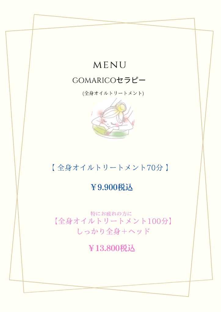 #salondureiko #全身オイルトリートメント #gomaricoセラピー #癒し #滋賀県甲賀市 #隠れ家サロン #gomaricoエステ #丁寧 #gomaricoビューティーオイル