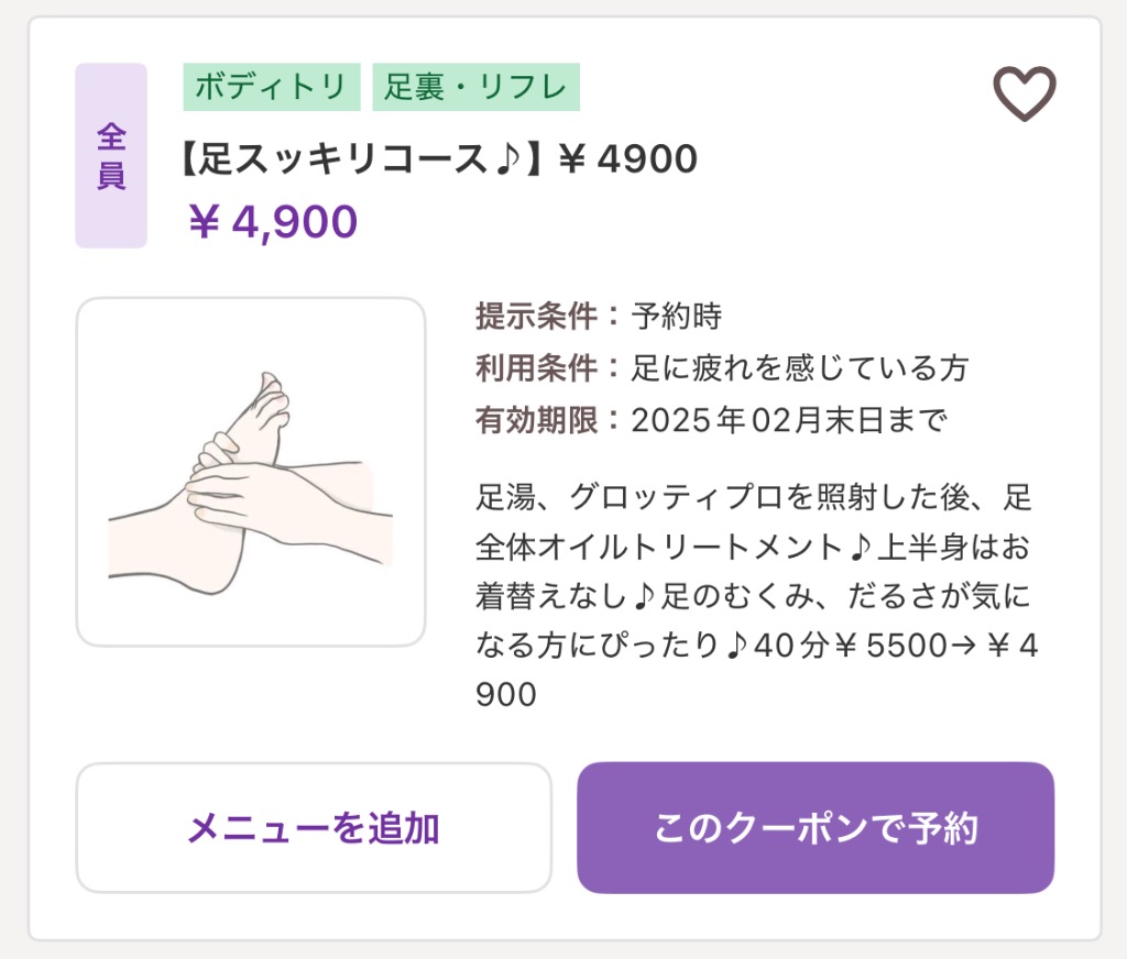 足だるいなぁ…足だけ受けたいなぁ…のお客様